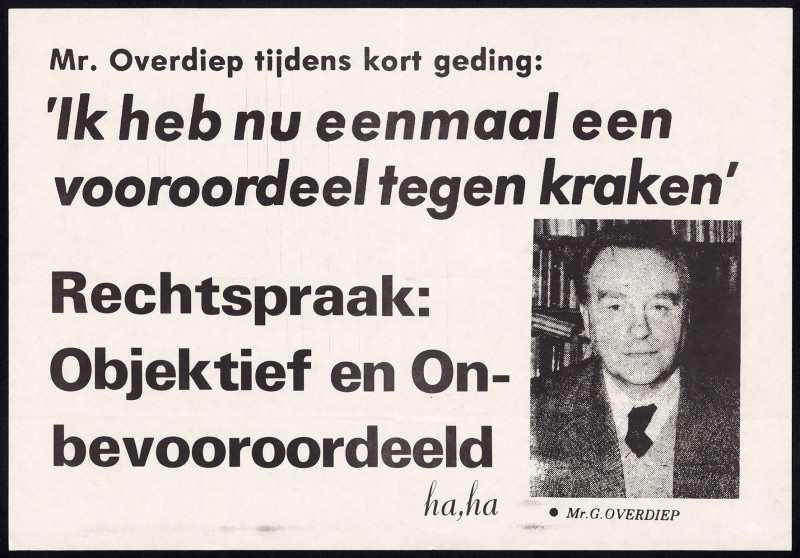 Na een dagvaarding over het uitzetten van enkele krakers uit het pand aan de Heerestraat keerde de advocaat van de krakers zich tegen Overdiep. Hij diende een akte van wraking in die ongegrond werd verklaard. De advocaat van de krakers, mr. J. Knol sprak van een ‘hoge mate van vijandschap’ tussen de beide partijen, gebaseerd op de eerdere uitspraken van mr. Overdiep. De krant Trouw meldde hierop ‘Overdiep had schriftelijk laten weten dat hij niet in de wraking berustte omdat de ‘’hoge graad van vijandschap’’ persoonlijk moet zijn wil de wraking gegrond bevonden worden- en hij kent de partijen in het geding niet eens.’