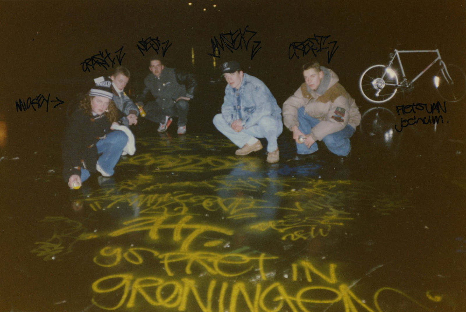 De hiphop parties trokken naast de homeboys en flygirls ook (aanstormend) graffiti-talent aan. Zo ontstonden de eerste contacten tussen graffiti-artiesten en hiphoppers. De culturen raakten tijdens deze parties meer en meer met elkaar vermengd. De foto’s van pieces die Patrick Korenhof in Amsterdam maakte werden tijdens deze parties grif met elkaar gedeeld. Zo kwam de scene in Groningen in aanraking met graffiti uit andere steden. De graffiti verplaatste zich van muren en bushokjes naar jassen, petten, schoenen en zelfs kapsels.