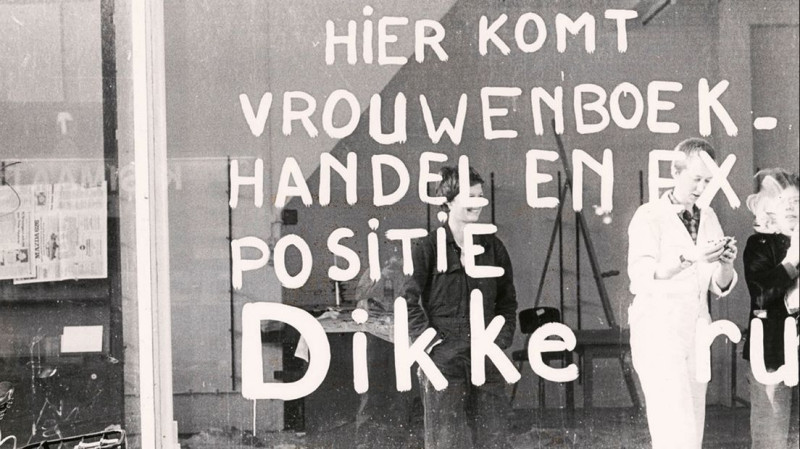 In datzelfde jaar werd ook de eerste lesbische roman uit de bouquetreeks ‘Wilde Rozen’ uitgebracht, een serie over lesbische avonturen in de stad Groningen. Deze werden geschreven door Damesschrijfbrigade DORCAS, oftewel Marianne Gossije, Marlite Halbertsma, Hanneke Dantuma en Margriet ter Steege. Wanneer ik rondvraag naar wie van de vrouwen uit de Lesbiese Beweging zich bezighielden met graffiti, word ik doorverwezen naar laatstgenoemde, Margriet ter Steege.