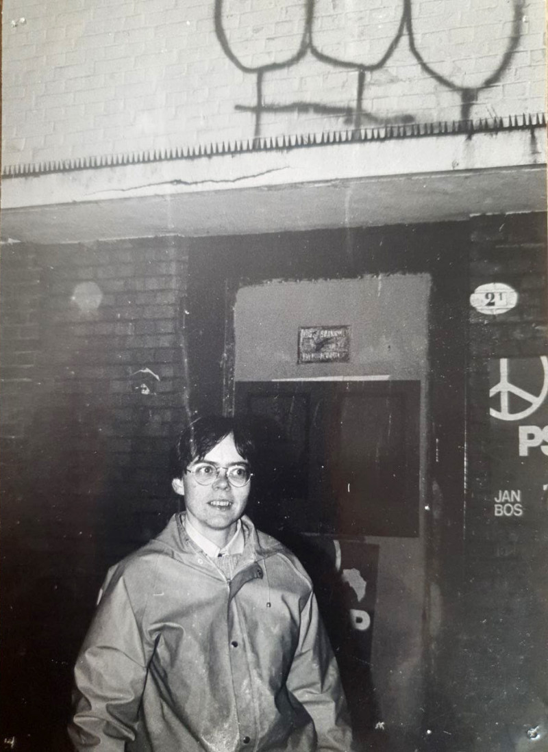Margriet vertelt dat haar handschrift nooit fantastisch is geweest, en dat dat er met een spuitbus niet op vooruit ging. Een andere actie betrof het dichtlijmen en bekladden van sexshops tegen vrouwenuitbuiting. Daarbij had Margriet “afgekeurd” op de ruit willen spuiten, maar ze was de ‘u’ vergeten waardoor er groot “AFGEKERD” stond, waar ze tot op de dag van vandaag mee wordt geplaagd.(12) Op de achterkant van deze foto staat: “Voor onze Neerlandica”.