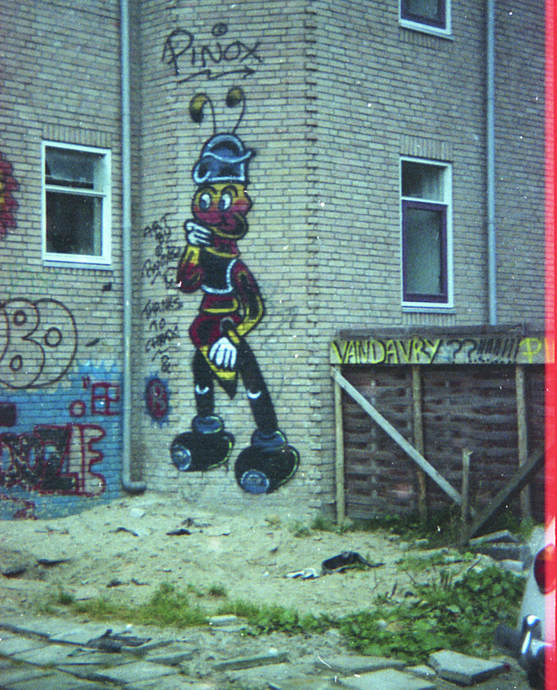 Mijn scepsis verdween echter bij het zien van de muur. De muur is de uitzondering die de regel bevestigd. Het mag werkelijk een wonder heten dat het nog in tact is. Vrijwel onaangetast door A: weersinvloeden. B: Gemeente reinigingsdienst. C: Nieuwbouw. D: andere Graffiti schrijvers.