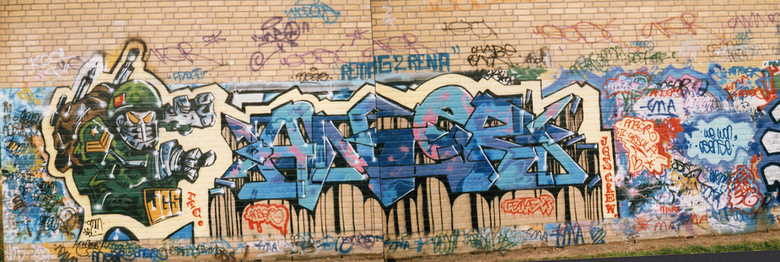Ja, nee. Ik ben niet echt heel actief meer. Ik ben heel lang heel actief geweest. Ook in een stijgende lijn zeg maar, qua intensiteit. Maar op gegeven moment stopte het voor mij. Heel veel vrienden zijn gewoon altijd keihard doorgegaan. Ik niet. Ik ben gewoon gaan focussen op andere dingen, maar je sluit het nooit helemaal uit. Er zijn gevallen waar je het helemaal loslaat, maar het blijft een soort van connectie. Je moet je ook voorstellen, of eigenlijk moet je je inbeelden, nee sorry, beseffen, dat graffiti, ondanks dat ik het persoonlijk geen kunstvorm vind, maar stel je zou het zo zien dan is het de grootste kunststroming ter wereld, ooit! Er is namelijk geen kunststroming die langer bestaan heeft en die groter is, wereldwijd! Dat bestaat eigenlijk niet. Het is gewoon wat het is. Want je als graffiti en hiphop of rap vergelijkt of met oorlogsvoering, dan valt dat wel mee. Er is meer oorlog dan graffiti.