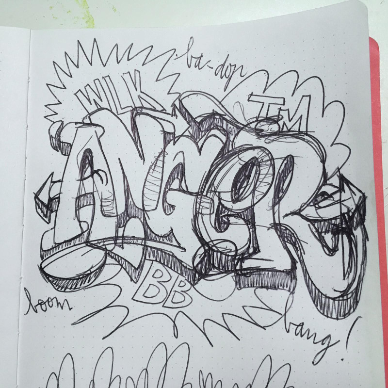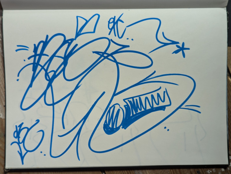 Ja, heel veel tekenen. Maar je ontwikkelt jezelf natuurlijk ZO in die leeftijd. Je ontwikkelt jezelf qua interesse als puber, als beginnende puber. Je gaat naar school. En ik denk dat toen ook voor het eerst kabel-tv een beetje een ding werd. Dus je zag meer andere dingen. Je ging dingen natekenen. Maar je ontwikkelde jezelf ook met je vrienden om je heen. Je ontwikkelde een code en stijl. En dan niet alleen op het gebied van graffiti maar op gebied van alles eigenlijk. Dat is het onderdeel van het opgroeien. Ja, de hele wereld heeft op dat moment Style Wars gezien. Iedereen werd gestoord. Als iedereen zonder Style Wars was er denk ik gewoon 60% minder graffiti geweest.