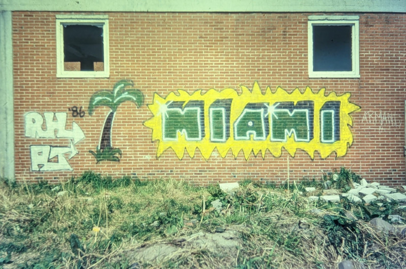 Ik heb heel lang lopen denken over wat mij heeft getriggerd om te beginnen met graffiti? Maar ik ben eigenlijk gewoon uit mezelf begonnen. Met m'n ouders deden we wekelijks boodschappen in Duitsland, in Papenburg had je de Alkauf en ook een doe-het-zelf winkel. Daar kwamen spuitbussen, één rood, één zilver, één zwart en één wit. En toen heb ik op mijn kamer m'n eerste grafitti gezet, ergens in 84/85. Ik had toen Style Wars toen nog niet gezien. Ik denk dat het gewoon een soort van samenloop van omstandigheden was, een combinatie van dingen als Miami-Vice, of de U.S.A crew in Club Veronica. Die Miami, die allereerste piece in Winschoten, is gezet zonder invloeden. Die heb ik met mijn neef gezet, we zetten onze initialen AT en RH erbij, echt supermongool maar ja, dat was toen zo. Ik denk dat het TV programma Miami-Vice een belangrijke inspiratiebron voor is geweest. Dat ik daar iets heb gezien, want waarom zou ik eigenlijk anders een Miami maken met een palmboom ernaast? We vonden Winschoten altijd een stad en het niet rechtvaardig dat wij bekeken werden als boeren. We vonden onszelf stadsbewoners. Misschien was dat ook een van de reden waarom ik met graffiti ben begonnen. Omdat het stads was.