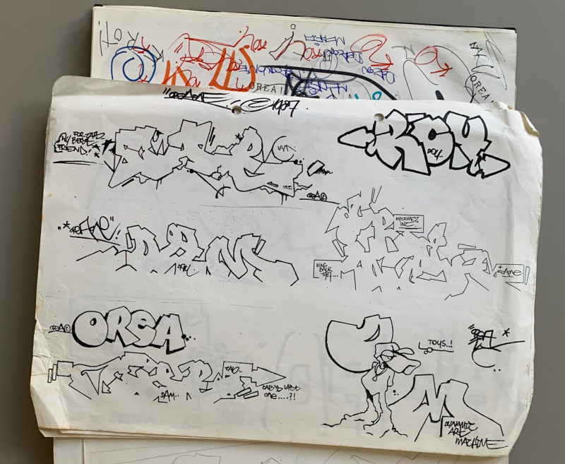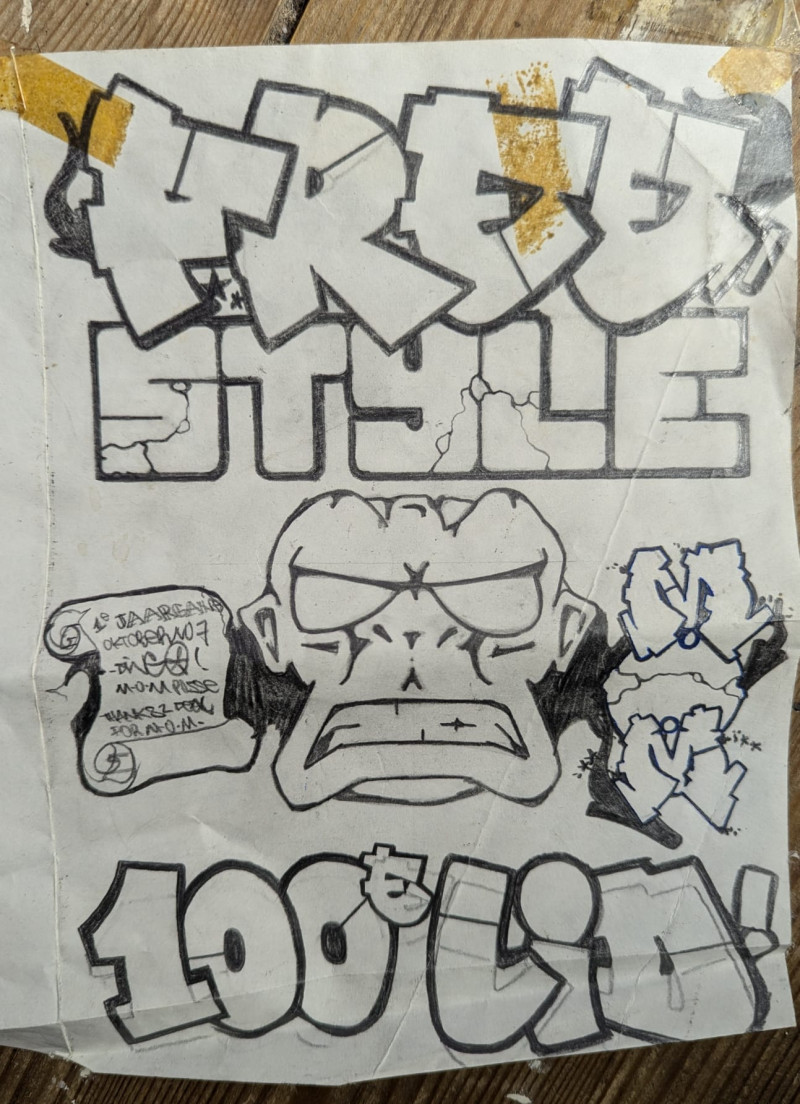 Mich was echt mijn bestie, die kwam bijna iedere dag bij ons thuis. En dan zaten we aan tafel te tekenen. Style Wars, een kopie van een kopie van een kopie met een ontzettende slechte kwaliteit, werd grijs gedraaid. En tijdens het tekenen hiphop luisteren; My 9 millimeter goes bang. BDP was mijn favoriete groep. Rauwe eastcoast hiphop, niet van dat gejengel uit LA. En mijn ouders zaten daar dan gezellig bij. Zij waren speciaal en hebben mij nooit tegengehouden. Ik was altijd heel hecht met hen en zei het ook altijd als ik 's nachts op pad ging; 'mam, vanacht ga ik weg'. 'Ja, kijk je uit.' Ik had best coole ouders.