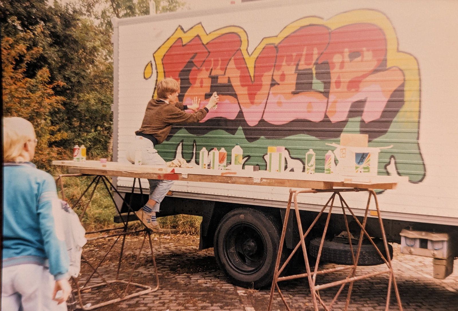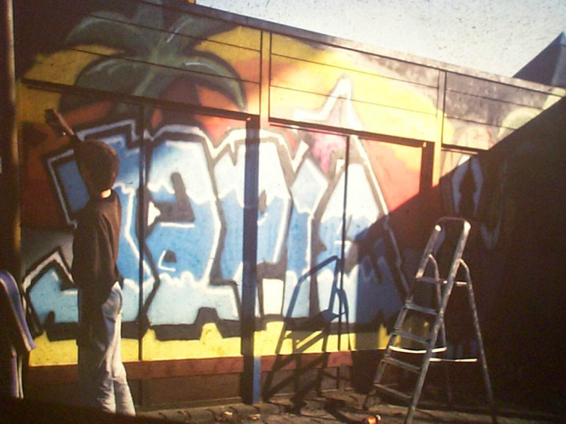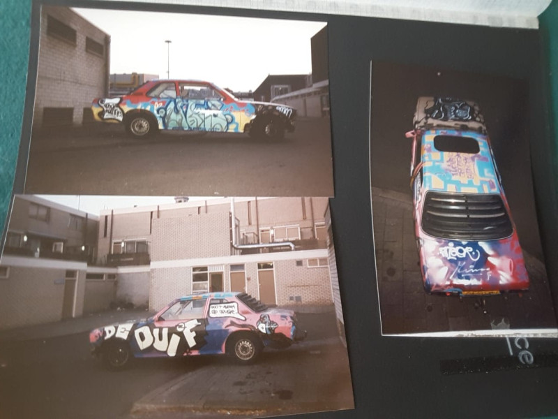 Eén auto die we deden was van de fotozaak waar we onze foto's lieten ontwikkelen. Als tegenprestatie kregen we dan gratis foto's. Toen hadden we ineens heel veel foto’s tot onze beschikking en ontstond er een fotohandeltje bij. Zo hadden we een verfhandeltje en een fotohandeltje. We zaten overal in, maffiapraktijken haha. Of we zetten schuttingtaal op een rolluik zodat het interessant werd er iets kunstzinnigs overheen te laten zetten. We hebben zo’n 30 à 40 opdrachten gedaan.
