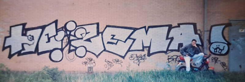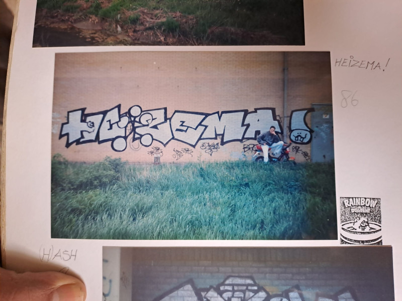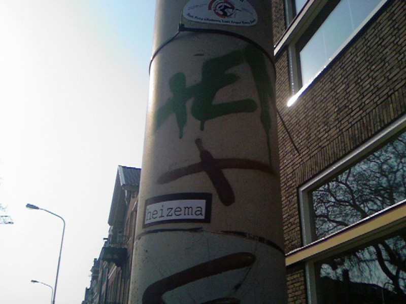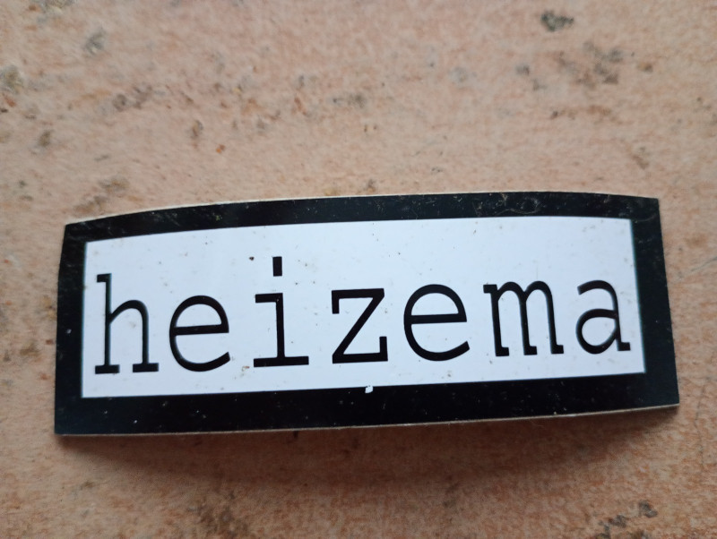 Heizema was begin jaren ’90 een studentikoze, streetart variant binnen de Winschoter graffiti. Zij experimenteerden bijvoorbeeld met stickers. Tags met stift op stickervellen bestond natuurlijk al wel binnen de graffiti, maar de Heizema’s kwamen met een standaard lettertype op voorgedrukte vellen en dit week af van het gebruikelijke.