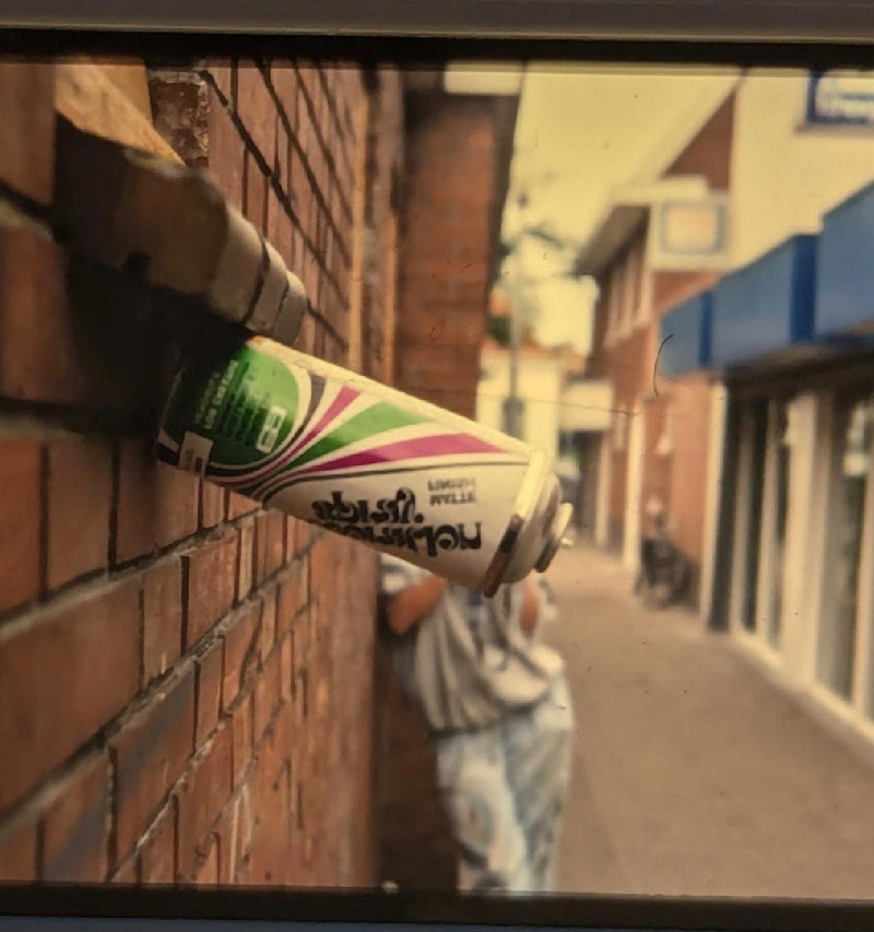 'Horen die twee ook bij jullie?' vroegen ze, terwijl ze naar verderop over de rails zwalkende Dingo en Kroppe wezen. 'Nee, die kennen we niet' dus de sukkels lieten die twee overduidelijk bezopen gasten wezenloos over de rails verder strompelen, schijnbaar te voet op weg naar Winschoten. Totaal bezopen en in hilarische feeststemming zaten we daar dan op de achterbank op weg naar het politiebureau. Onderweg heb ik effe die Edding 850 strategisch onder mijn leuter verstopt en Frits zat natuurlijk gewoon door te zuipen. Aangekomen in Winschoten rolde zijn halve biervoorraad over de parkeerplaats en we waren nog steeds in jolige stemming. Niemand was onder de indruk van de situatie behalve de politie zelf. Eindelijk hadden ze ons te grazen.