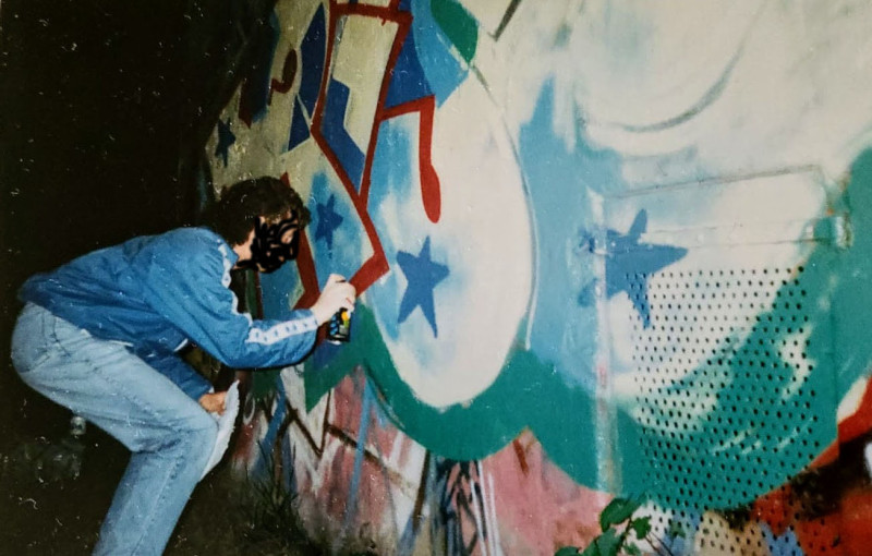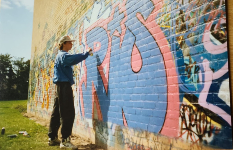 En hij heeft gelijk. Als je hem nu ziet, een rustige man van ergens in de vijftig, zou je nooit zeggen dat dit dezelfde gast is die ooit, midden in de nacht, met z’n spuitbussen het dak van een oude panden opklom om daar toffe pieces te maken. Hij vertelt het met een kleine glimlach, bijna verontschuldigend. “Ik was jong en dacht dat ik onoverwinnelijk was, weet je,” zegt hij, terwijl hij de pieces in de tunnel staart. “We hadden lef, misschien wel iets té veel lef soms.”